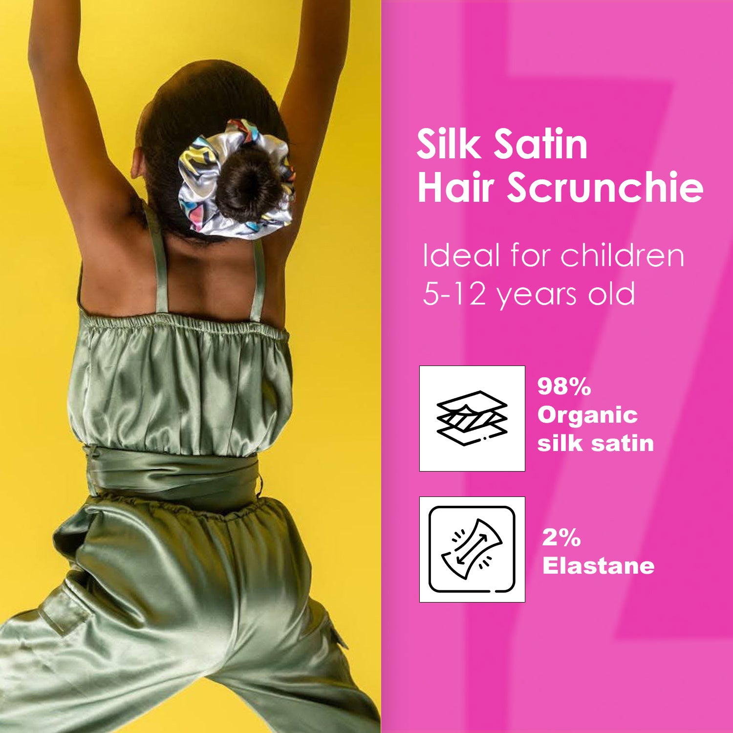 Gentle on mixed-textured hair, these organic silk satin scrunchies are your charming fashion companions, day and night. They’ll keep you tangle-free, knot-free, and frizz-free! Made with organic natural materials and pure love, they help retain moisture in your hair. Oversized and perfect for any hair type, they come in three cool designs to complement any outfit and make a bold statement. These scrunchies aim to prevent hair damage, decrease creasing, and stop breakage while adding a sprinkle of magic to your look.